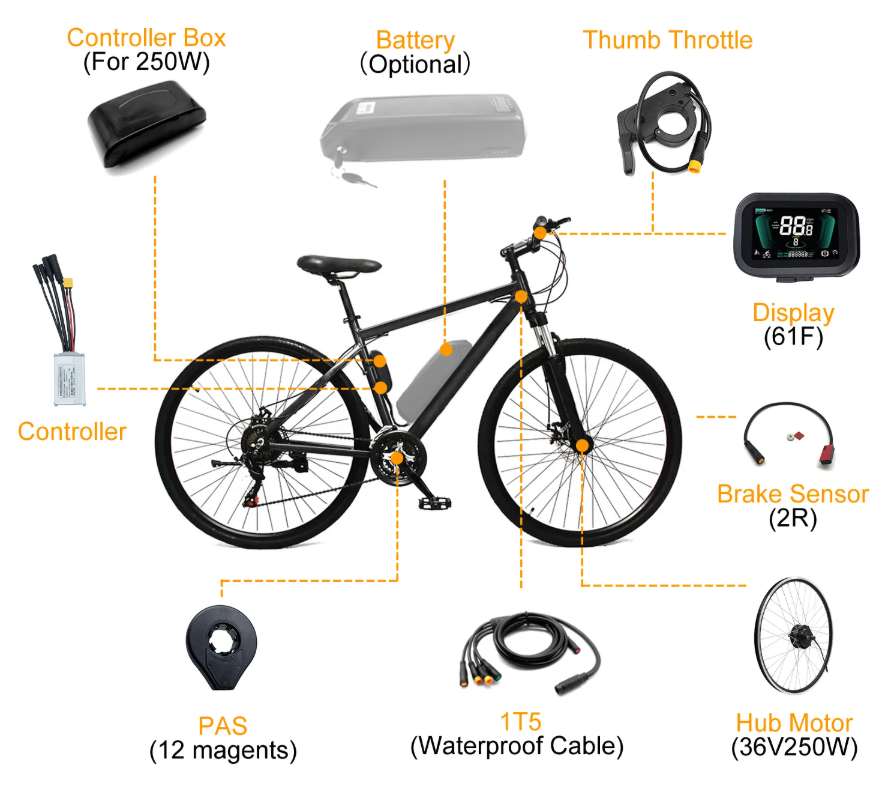 Dviračio elektrifikavimo komplektas 250W 36V